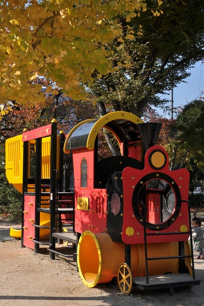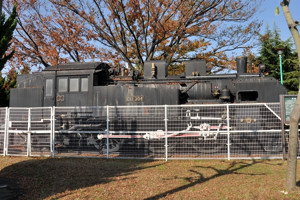 蕨市の大荒田交通公園に保存されているC11 304号機です。新橋駅に保存されている C11 292号機と同様にドームが角形の戦時設計ですが、デフは通常の鉄製になっています。