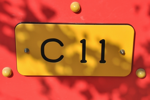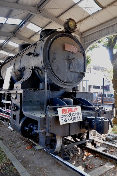 同機は大宮工場の構内機関車として廃車を迎えたため、前照灯と煙突の間には鐘が付いています(現在の構内機関車にはチャイム音を鳴らすスピーカーが付いています)。正面ナンバープレートは「C」が脱落しています。