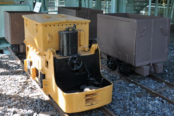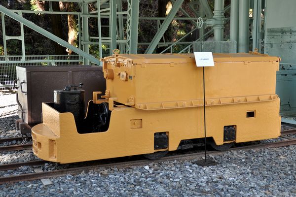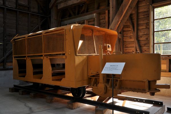 こちらは日立鉱山で使用された同型機。説明板には太空600型となっていますが、実際は600B型です。軌間は足尾より広い610mm。