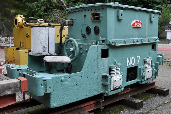 反対側。鉱山なので動力は圧縮空気です。足尾での軌間は475mm。