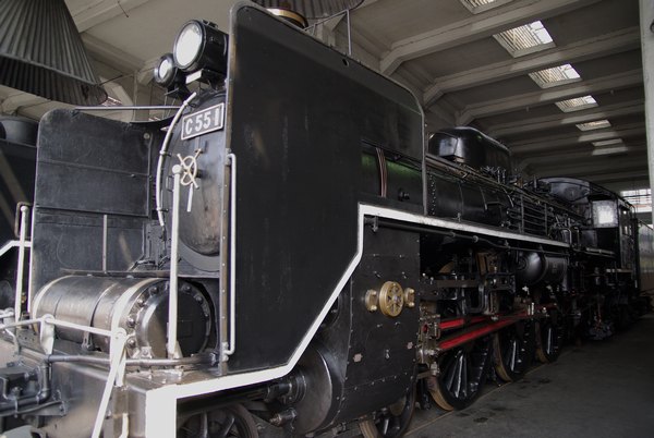 梅小路に保存されているC55 1号機です。デフの形状が角張っています。
