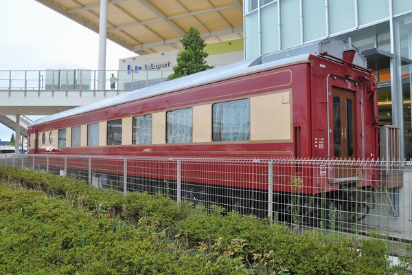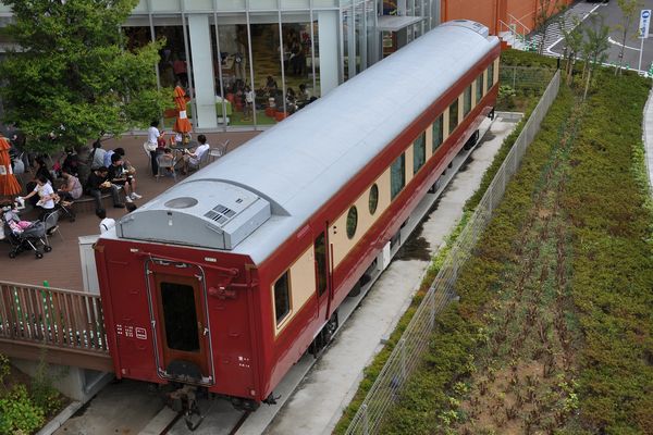 上から見たところ。車両としては独立していますが、フードコートに組み込まれており、車内も利用されています。残るオロネ25 901は引き取られず、尾久に留置されています。