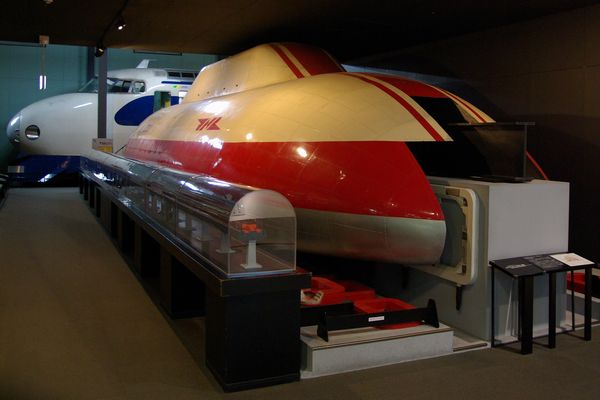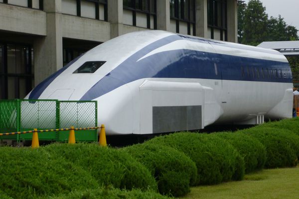 鉄道100周年を記念して1972年に登場した、4人乗りの磁気浮上式リニアモーター試験車ML100です。国鉄マークがなつかしい。