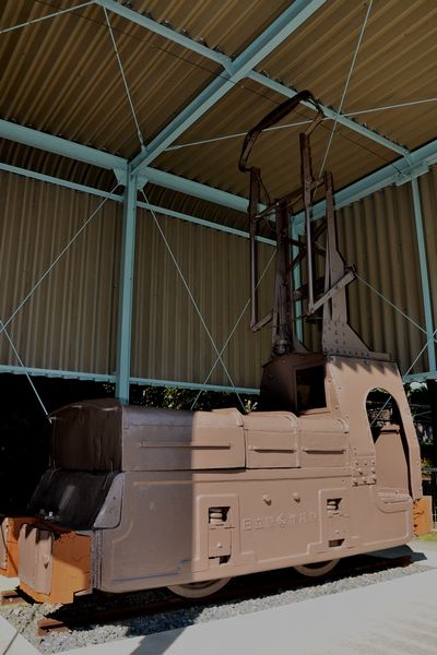 こちらは足尾A型電気機関車A-1。やはり自社製で、1953年改造の銘標が残っています(製造年は未確認)。後ろに連結されている2両は「人車」と呼ばれる鉱山での人員輸送用客車(1955年製造)、さらにその後ろは1t角鉱車です。