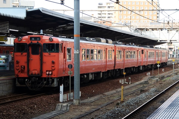 山陽本線の3両編成の横で、キハ47の4両編成が走っていたりする岡山地区です。
