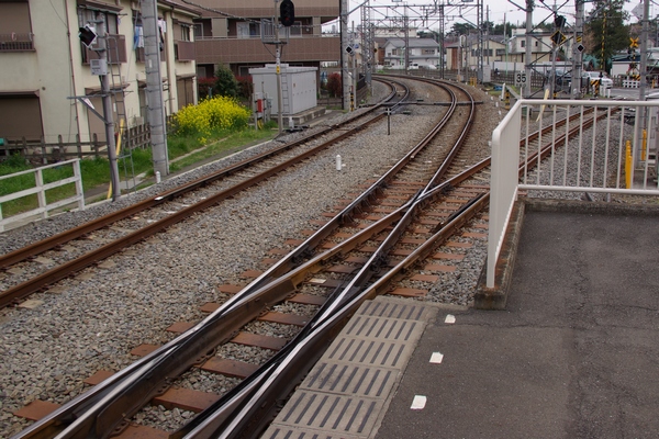 ここ萩山駅はホームの途中に分岐があるためです。三島駅のような面白さはありませんが。