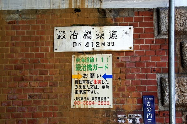 東京駅の南側にある東海道線No.1 鍛冶橋架道橋です。ちなみに東海道線の最初の踏切は品川道踏切です。