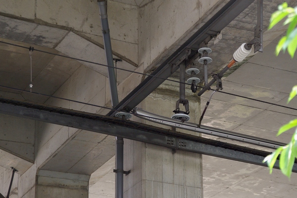 こちらは剛体架線どうしのセクション。地下鉄の場合、トンネル内の観察は不可能なので駅に設置してもらえるとありがたいわけです(笑)。