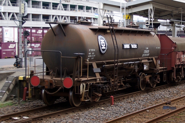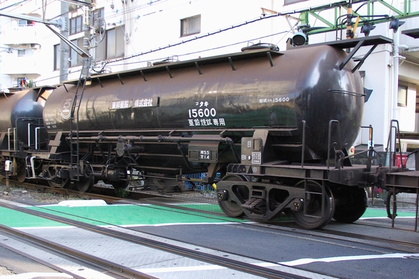 東邦亜鉛所有の40t積み亜鉛焼鉱タンク車タキ15600形のトップナンバータキ15600です。