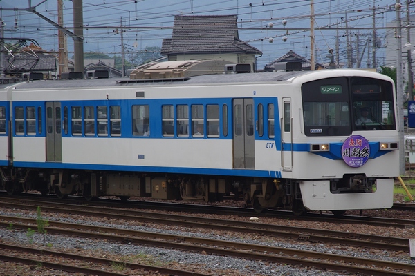 急行「川瀬祭号」のヘッドマークを付けたデハ6003です。(参考:西武 新101系譲渡車