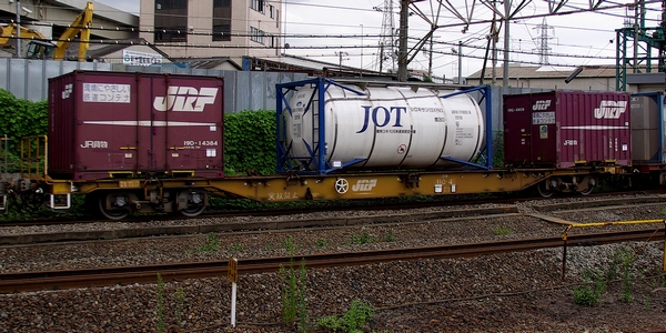 わずか5両しか製造されなかったコキ110形式。そのうちの1両の コキ110-4 です。この日の編成は以下の通り。コキ110は、コキ200の次に連結されていることが多いような気がします。