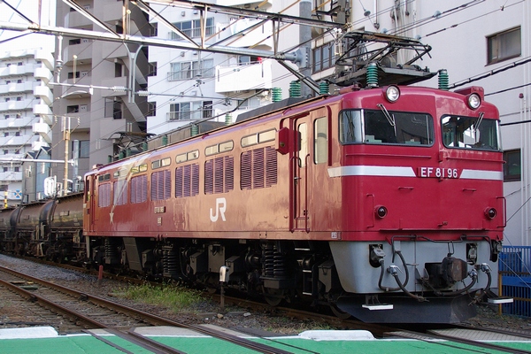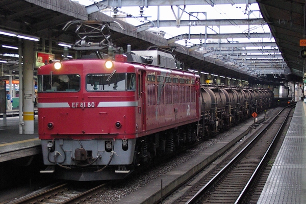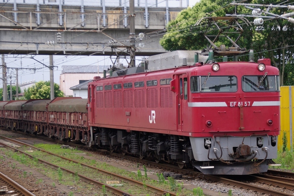 常磐線・泉を昼前に出発し田端・高崎線を経由して信越線・安中へ向かう通称「安中貨物」です。交直流区間を直通するためEF81が牽引します。この日はヘッドマークステイ付きの57号機が牽引。