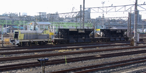 東鉄1002+ホキ1774+ホキ1877の3連。たとえ動力車でも車籍がなければただの機械。地味な貨車でも車籍があれば立派な鉄道車両。