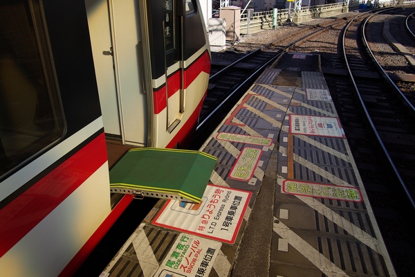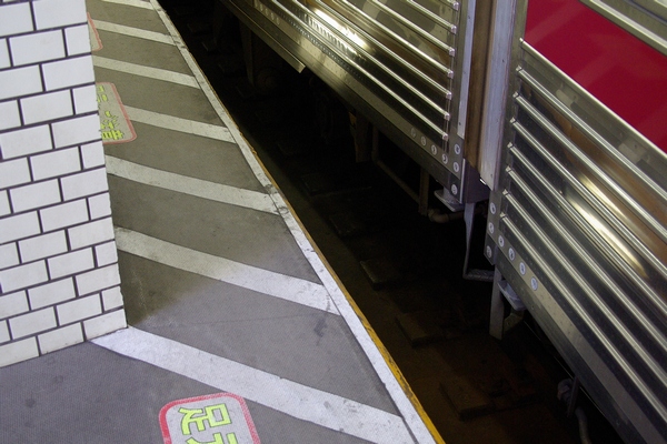 電車が止まっていても、通路の幅よりホームと電車のすきまの方が広いし。