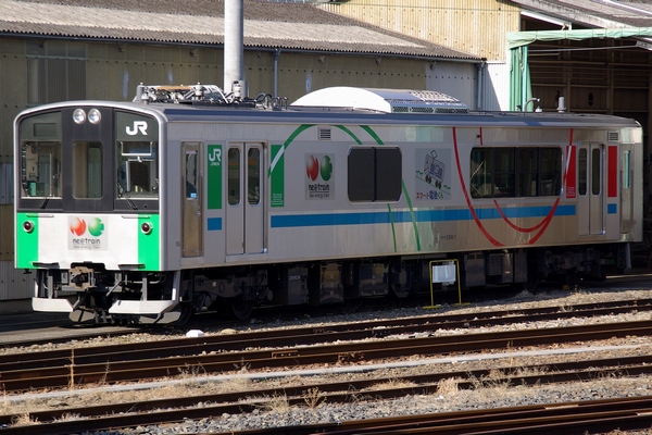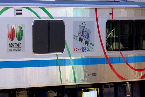 以前掲載したときは、型番が目隠しされていましたが、クモヤE995-1 という表示が入りました。さらにロゴマークが貼られたほか、窓形状が変更されています。