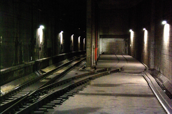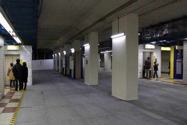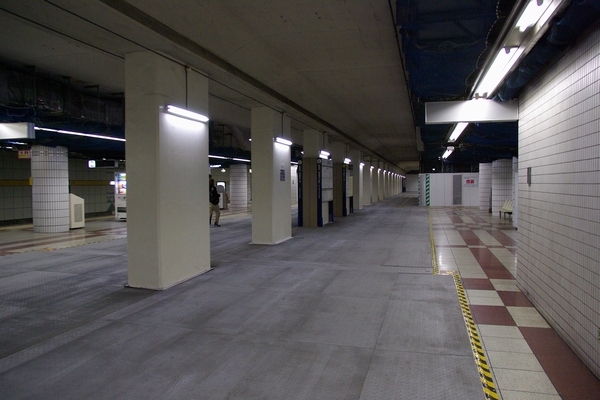 ついでにA線新木場方向を眺めてみました。ほとんど真っ暗なところで、手持ち+思いっきり増感なので酷い絵ですが、まあ、こんな感じ。