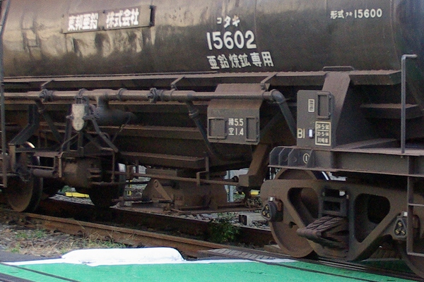 以前、屋根の積込口を掲載したので、今回はタンクの底にある取出口に注目してみます。画像は、この日の最後尾タキ15602のタンク底です。
