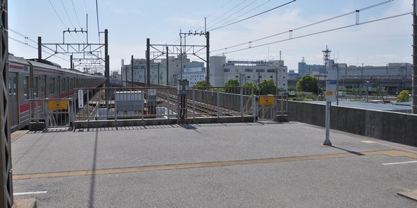 ホーム東端(南船橋方)からは武蔵野線との分岐合流部分が見えます。武蔵野線は京葉線より高い高架です。