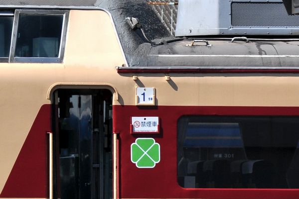 運転席後方のケーブル。「屋根から出ている位置が違う」です。ところで、このクロハ481にはグリーンマークの下に「GREEN CAR」の表記がありません。ロハでも普通はついていると思うので、単なる付け忘れでしょうか。