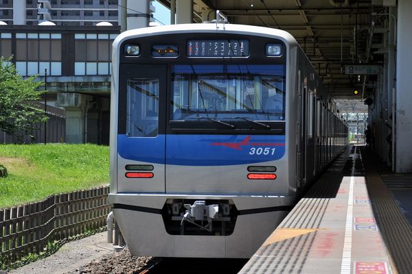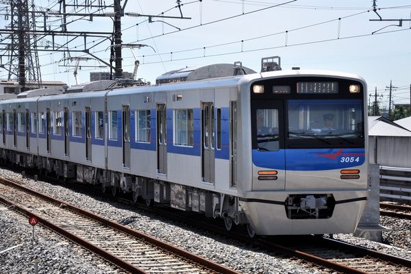 成田スカイアクセスのアクセス特急として運用が開始された京成(新)3000形7次車(通称3050形)3054-1です。従来の3000形とは異なって青系になり、北総7500形に似た雰囲気になりました。下のランプは急行灯です。