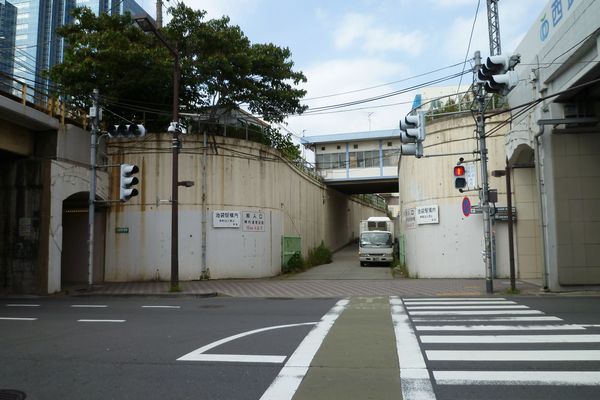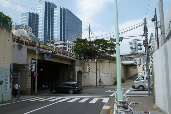 こんな感じです。2つのガードに挟まれた交差点です。右側に見える坂道は、