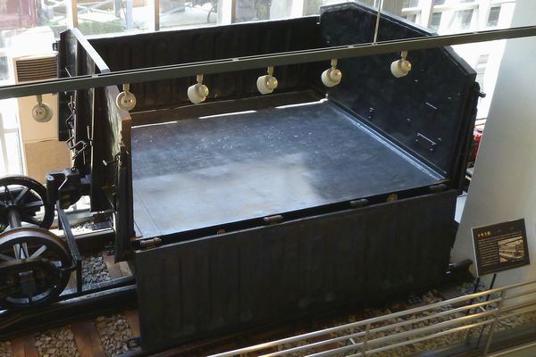 側扉を開いた旧トキ1形。所有者さえ番号を知らない。