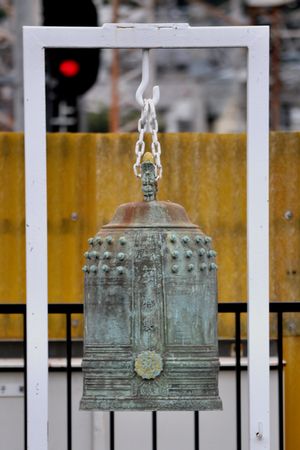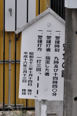 水戸駅5・6番線ホーム仙台方にある「安全の鐘」です。14時40分に警鐘すると書いてあるので待ちましたが、誰かが来る気配さえありませんでした。鐘のタタリがあるといけないので、代理でたたこうかとも思いましたが、指定もされていないし、鐘棒もないのでやめておきました。