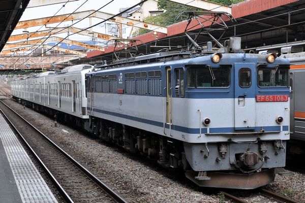 EF65 1083牽引の西武新101系259F甲種輸送です。武蔵野線で鉄系の人がやや多めだったので、きっと何か来るのだろうと30分ほど待っていたら、これが来ました。