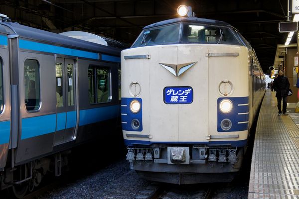 583系仙台車による臨時列車「ゲレンデ蔵王」の回送です。埼玉での仕事の帰りに鉄の方々が臨戦態勢に入っているのを見て大宮で下車したら、その直後にやってきました。先頭はクハネ583-8。