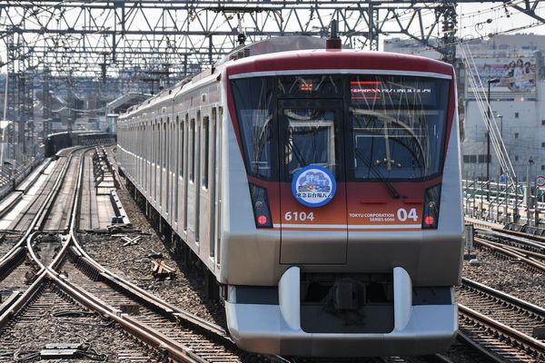 東急お台場パスのヘッドマークを取り付けたクハ6104です。ずいぶん長い期間装着されています。