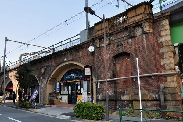 JR中央線神田-御茶ノ水間の紅梅河岸高架橋です。建設後100年以上になる現役橋です(参考:新石町橋高架橋)。右側に少し見えている緑色の橋は昌平橋架道橋です。