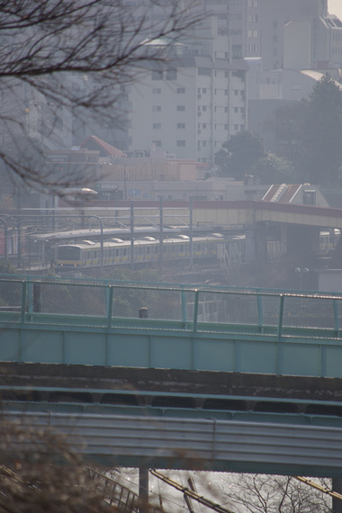 春がすみの中の市ヶ谷駅と E231系です。ただそれだけ。