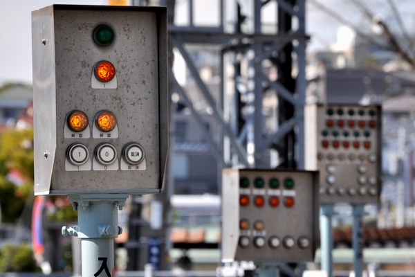 この踏切では、列車は踏切ぎりぎりで一旦停車し、運転している作業員自身が踏切を作動させるボタンを押します。