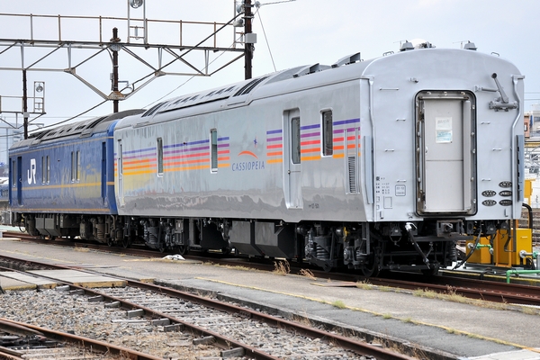 やっと復活したカシオペアの予備電源車カヤ27-501。後ろはカニ24 506。カヤ27-501はカニ24 510からの改造車です。