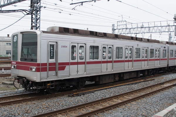 東武クハ21854です。東京メトロ日比谷線に直通するため18m車になっており、さらに5ドア対応になっています。18mの5ドア車となると、車体の窓は戸袋窓だけになってしまいます。