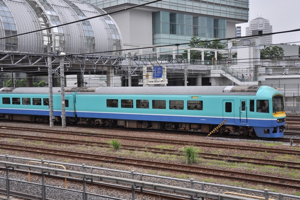 信号で停車していたさいたま新都心(大宮操車場)を発車するニューなのはなG1編成の団体列車です。