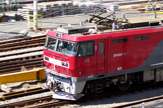 新宿を12時頃通過する EH500 牽引の名古屋行高速貨物。この日は15号機。