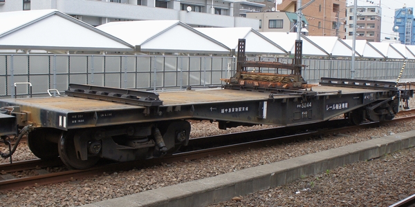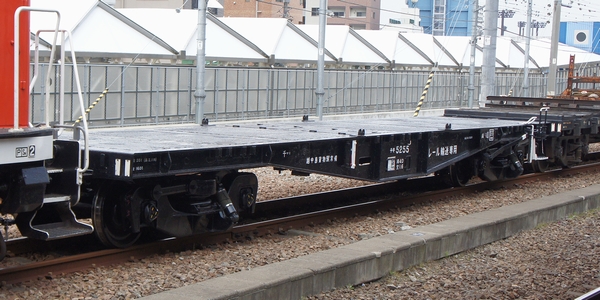 レール輸送用の長物車チキ5255です。レールを固定させる器具が付いていないので上面はすっきり。
