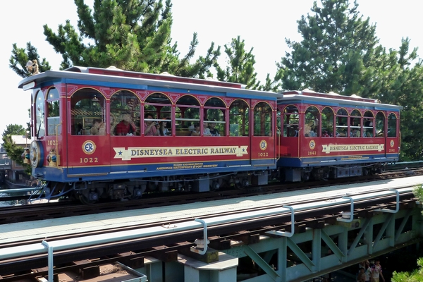 TDSの軌間762mm, 第3軌条方式のディズニーシー・エレクトリック・レールウェイ1022(左)と2842(右)です。