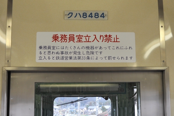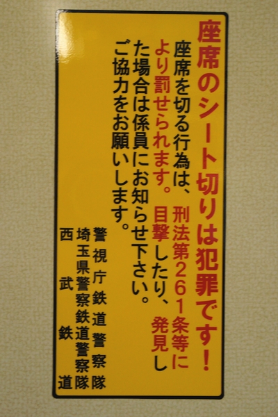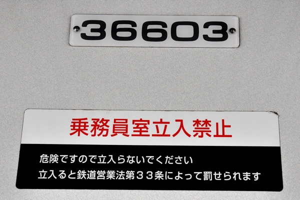 東武車につきものの立入禁止の注意書き。入ってはいけない理由を法律まで持ち出して延々と説明しています。東武は注意書きも自動放送も、日本語も英語も、くどいのが特徴。