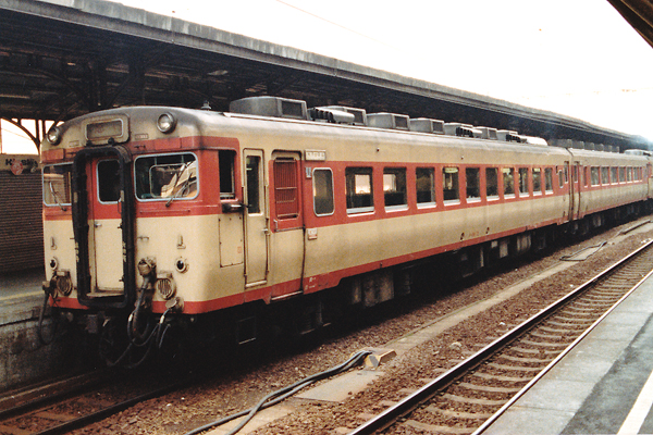 古い写真をスキャンしたキハ58 72です。「急行」表記になっていて撮影場所は岡山駅。2両目にキロ28が連結されているので急行「伯耆」と思われます。特急「やくも」に統合される直前の頃でしょうか。