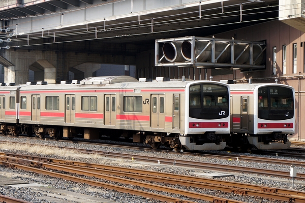 4両ずつ大宮に回送された京葉線ケヨ1編成(クハ205-108,右)とケヨ5編成(クハ105-112,左)です。