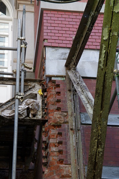 2階以上の部分のシートが外された東京駅です。もう光り輝く銅を見ることはできません。