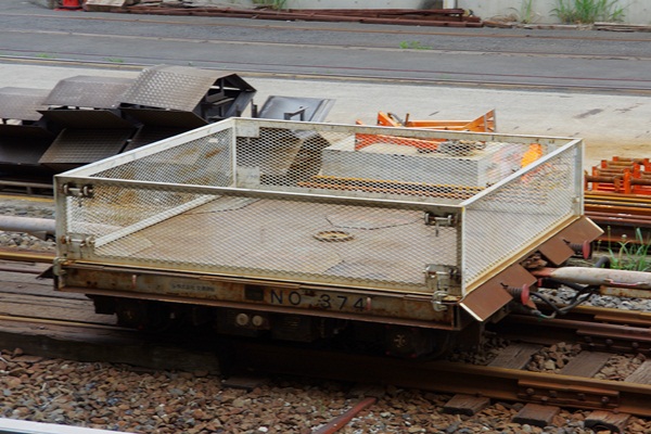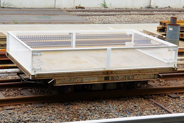 交通建設の金網張りの無蓋車NO.374。側面の金網は開くようです。