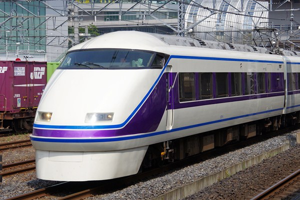 JR線を走行する東武スペーシア「雅」基調のモハ107-1です。