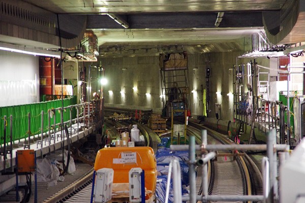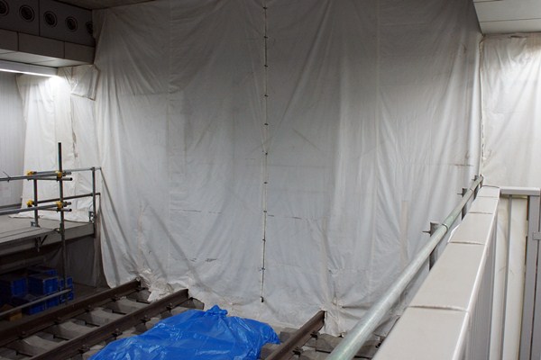 東京メトロ副都心線渋谷駅の東急東横線接続工事です。東横線方面が見えるようになっています。