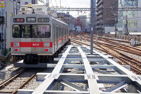 東京メトロ副都心線との相互乗り入れによる10両編成対応工事が進む中目黒駅(横浜方)です。