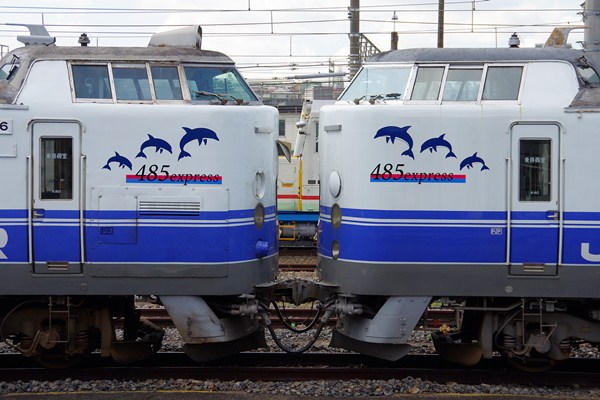 左がK60編成クハ481-1505、右がK40編成クハ481-345。タイフォンカバーとか、ヘッドライトとか、特急マークとかが異なります。