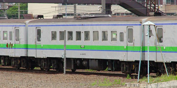苗穂に留置されているキハ141系4両です。学園都市線の電化に伴い廃車になると思われます。これはキサハ144-101(元オハフ51 7)。