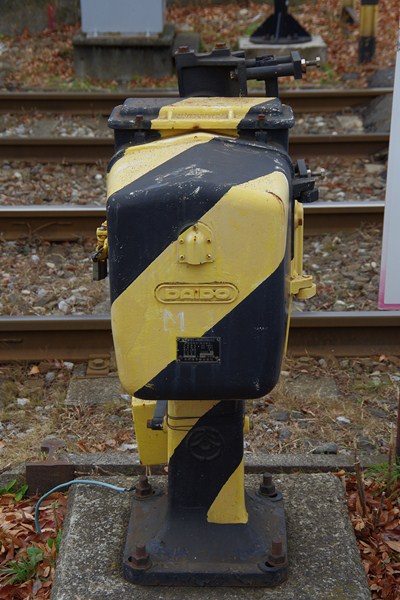 同踏切の大同信号製遮断機。竿は撤去されています。